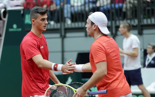 Erler (ATP-Doppel 52) fertigte gemeinsam mit US-Mann Robert Galloway (ATP-Doppel 39) am Montag zum Auftakt Guido Andreozzi aus Argentinien (ATP-Doppel 28) und Manuel Guinard aus Frankreich (ATP-Doppel 27) mit 6:3, 6:1 ab. Und am Mittwoch lieferte er im Achtelfinale wiederum eine gelungene Generalprobe für den Davis Cup ab. Der gebürtige Innsbrucker bezwang mit Galloway die zusammen dreifachen Grand-Slam-Finalisten Simone Bolelli (ATP-Doppel 14) und Andrea Vavassori (ATP-Doppel 15) mit 7:6 (5), 7:5, nach 1:3- und 0:40-Rückstand im zweiten Durchgang. Mit dem besiegten, siebtgereihten Duo ist wohl auch in Bologna auf Seiten von Gegner Italien zu rechnen.