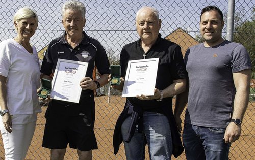 Im Zuge der Jahreshauptversammlung des Union Tennisclub Allerheiligen überreichte STTV-Präsidentin Barbara Muhr die Goldenen Ehrenzeichen des STTV an Josef und Karl Krenn für besondere Leistungen im Tennissport.
