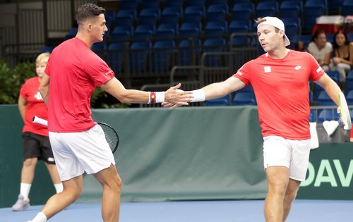 Miedler/Erler gingen als eingespieltes Duo mit der 2:0-Führung und einer 6:1-Davis-Cup-Doppelbilanz im Rücken als Favoriten ins Match gegen Marozsán/Piros. Doch von Anfang verlief die Partie auf Messers Schneide. Miedler/Erler machten aus einem 2:4-Rückstand ein 5:4 und 6:5 und hatten bei diesem Stand bei 15:40 sogar zwei Satzbälle, im Tiebreak lagen sie zudem 4:2 voran, durch fünf Punkte in Serie drehten Marozsán/Piros aber noch den Eröffnungssatz. Im zweiten Abschnitt wehrten Miedler/Erler bei 3:4 dann die einzige Breakmöglichkeit ab, zogen auch bei 4:5 und 15:30 nochmals den Kopf aus der Schlinge. In der Kurzentscheidung hatten sie jedoch abermalig das Nachsehen. „Ich glaube, wenn wir das bei 6:5 im ersten Satz machen, dann schaut es anders aus. Aber es ist jetzt halt so, wie es ist. Der zweite Satz war ziemlich eng, hin und her, und in den letzten drei, vier Punkten waren sie einfach besser“, konstatierte Erler. Über die starke Piros-Vorstellung zeigte sich Miedler keinesfalls überrascht. „Im Endeffekt haben wir 7:6, 7:6 verloren. Die haben gut gespielt“, befand Österreichs derzeit stärkster Doppelspieler. „Wir haben aber auch schon genug enge Partien gewonnen. Heute haben wir leider mal verloren – wobei vor allem Piros, finde ich, hervorragend gespielt hat.“