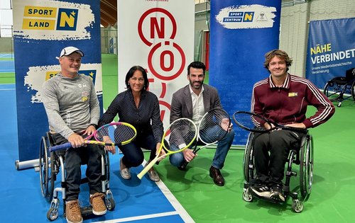 Am frühen Nachmittag des 3. Oktober fanden sich in der Tennishalle im SPORTZENTRUM Niederösterreich in St. Pölten die Initiator:innen rundum NÖTV-Präsidentin Petra Schwarz und LH-Stellvertreter und Sportlandesrat Udo Landbauer ein, um das Projekt der Öffentlichkeit zu präsentieren. Mit vollem Elan als begeisterte Schirmherren ebenfalls am Podium: Österreichs beste Rollstuhltennisspieler, die mehrfachen Paralympics-Starter Nico Langmann und Josef Riegler.