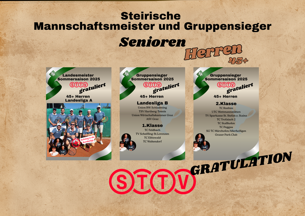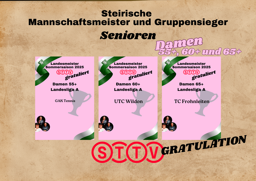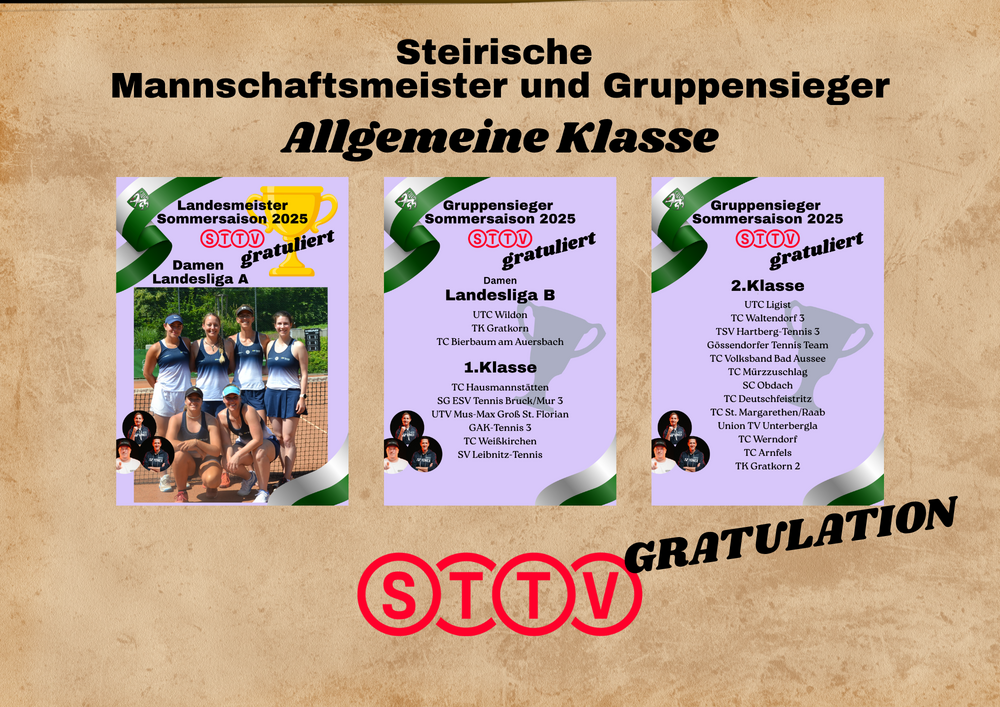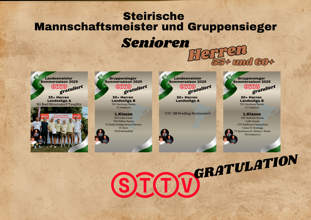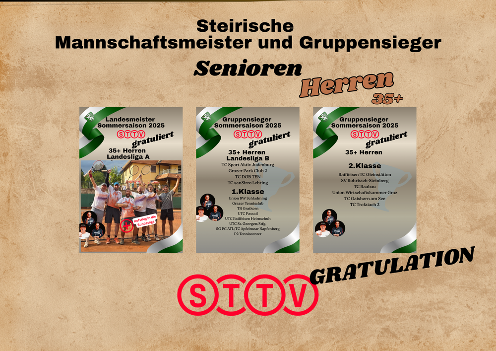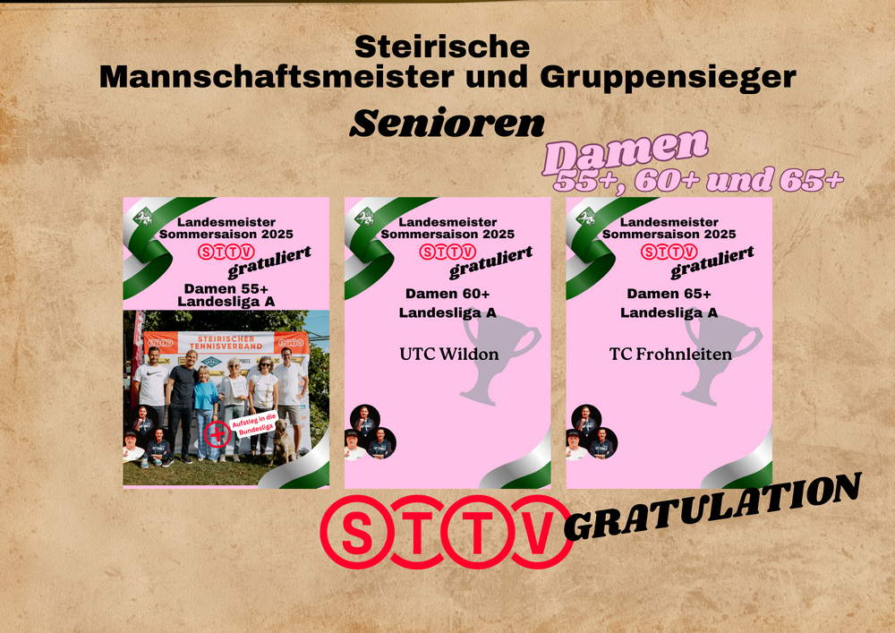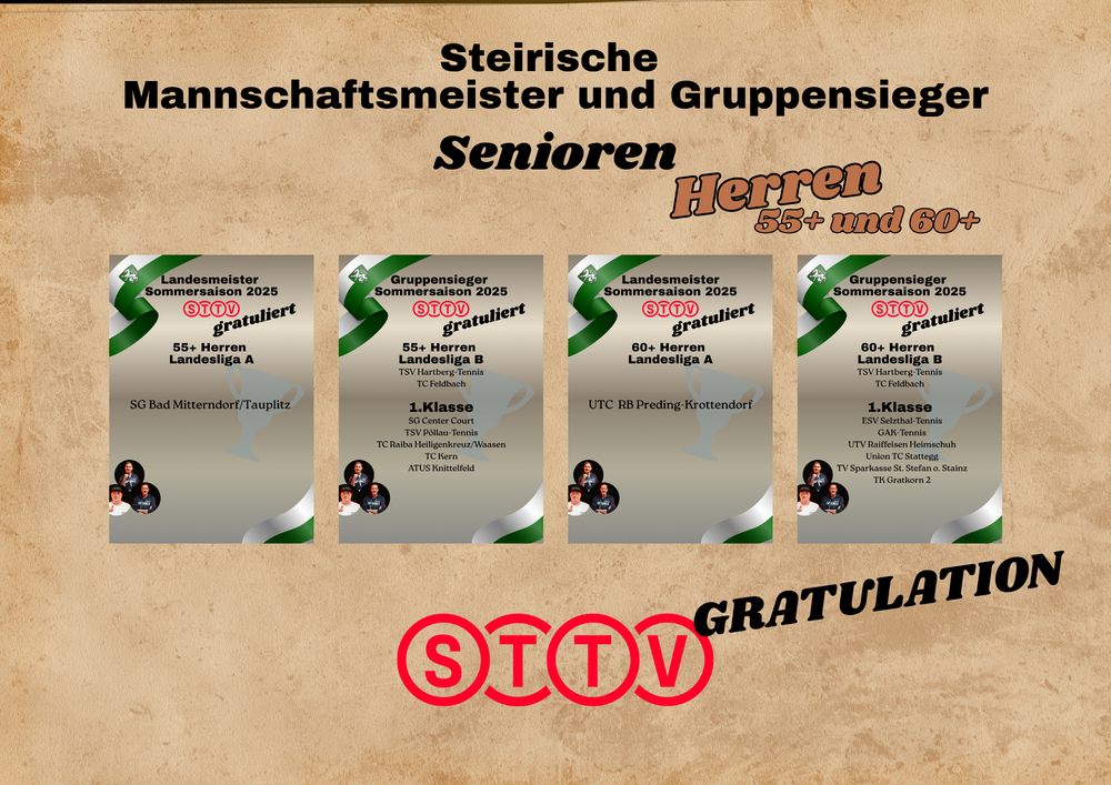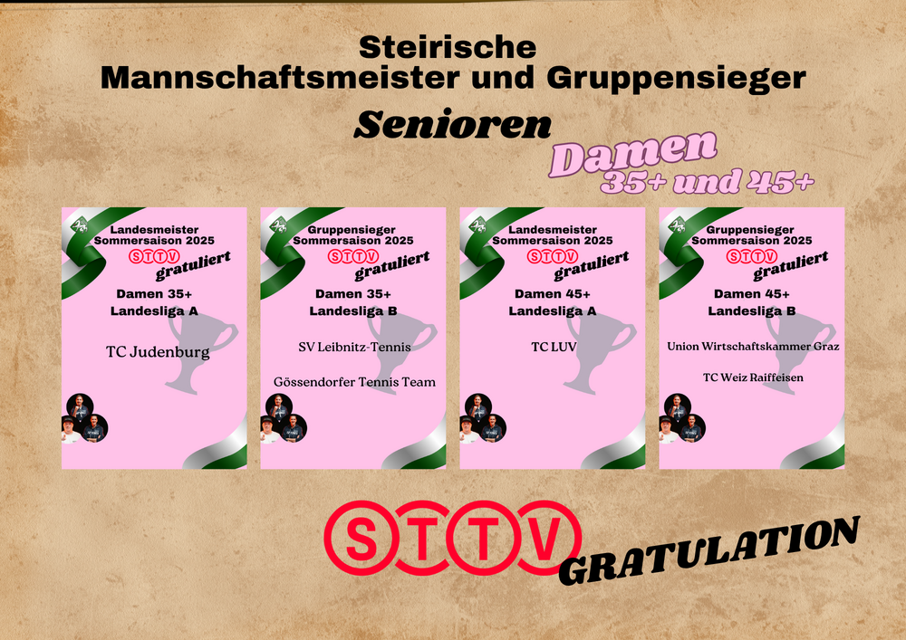 Der Steirische Tennisverband setzt ein starkes Zeichen der Anerkennung: Mit der neuen Ehrentafel für Gruppensieger würdigen wir ab sofort alle Mannschaften, die sich in der abgelaufenen Saison in ihrer Gruppe durchgesetzt haben – und das altersklassenübergreifend, von den jüngsten Nachwuchsspieler:innen bis hin zu den engagierten Senior:innen.